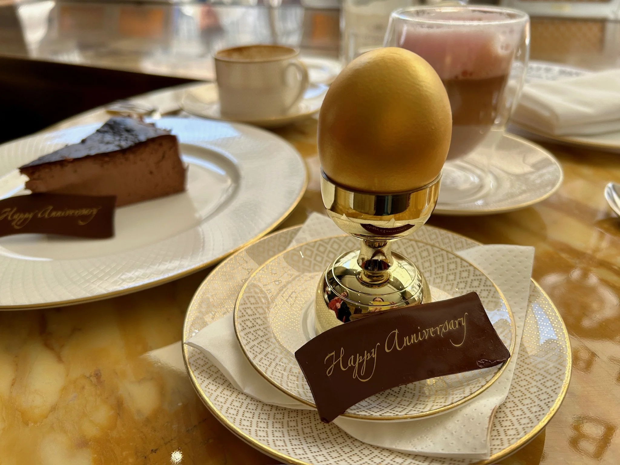 But here’s the key: you need to remember that you told them it was your anniversary. Otherwise, when they say “Happy Anniversary” or give you a plate where that message is relayed in chocolate, you’ll stare at them like idiots. We forgot we told Cakes & Bubbles it was our anniversary, so when they said it, we stared at them like idiots.