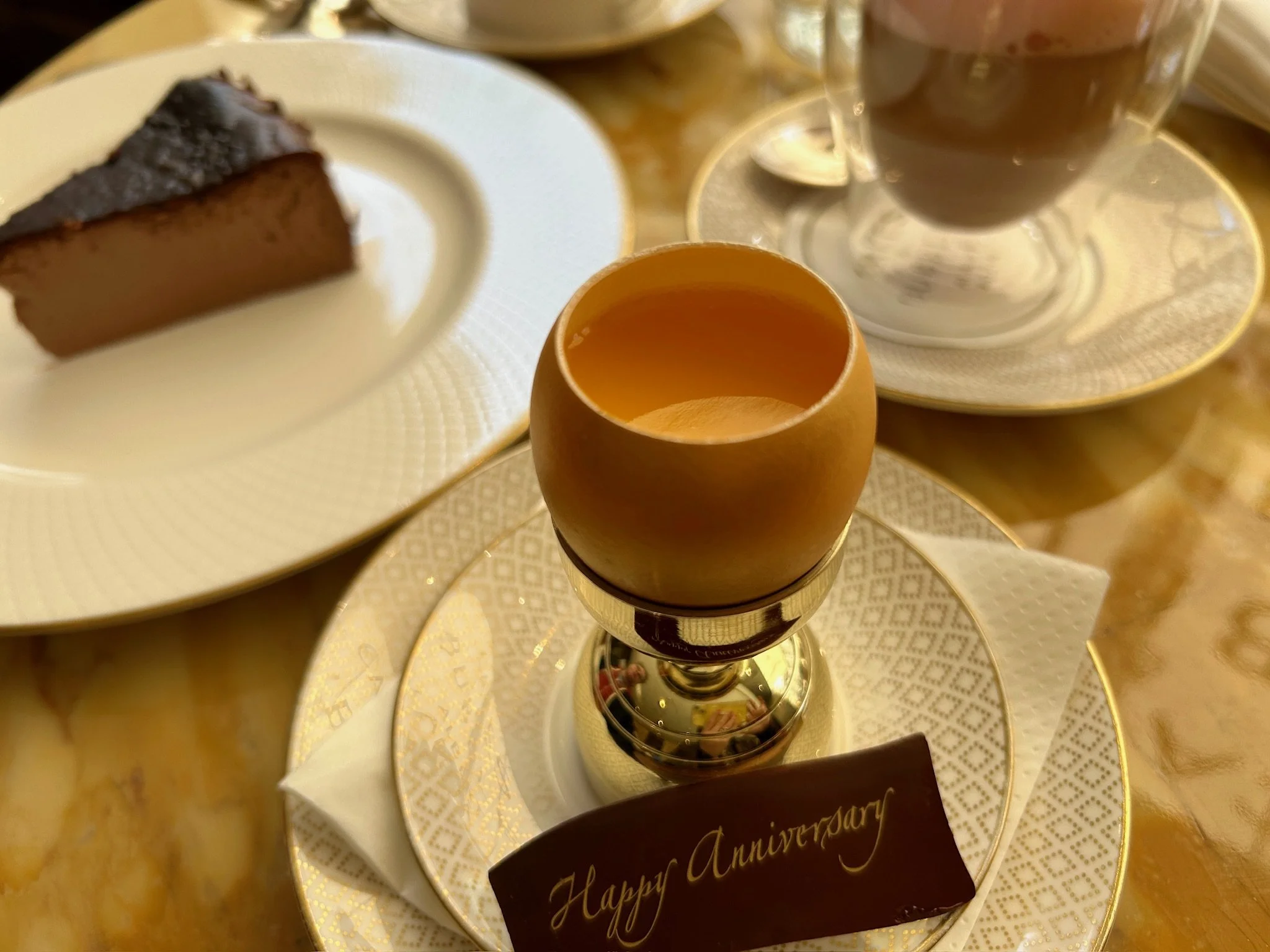 This seemed like an existential, Hugh Everett, bizarro universe kind of question. But what he wanted to explain was that the gold egg Eriko had ordered was not edible. It was a real eggshell painted gold. After taking your pictures, you were to flip it over and eat the Passion Golden Egg Flan inside, which looked sort of like the custard pudding cups Eriko gets form the konbini. She said it was really good, but to me, it seemed small and silly.