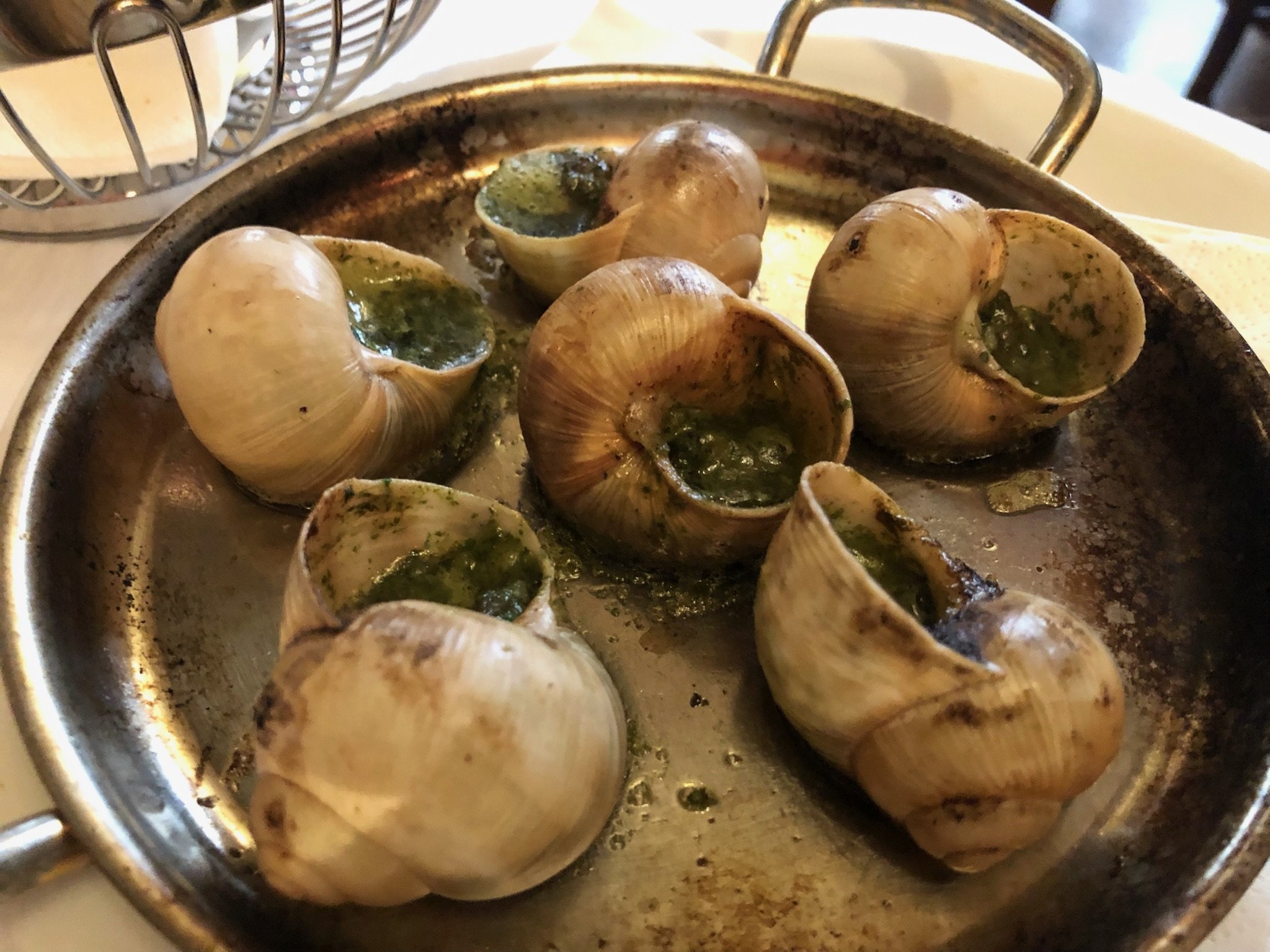 The food is also quite traditional, and we went for the Frenchiest stuff we could find. We started with escargots (for the stupid, that’s snails). Escargots isn’t so much a food as a conduit for delivering butter to your body. They taste like nothing, but man can they carry lots of butter to your mouth.